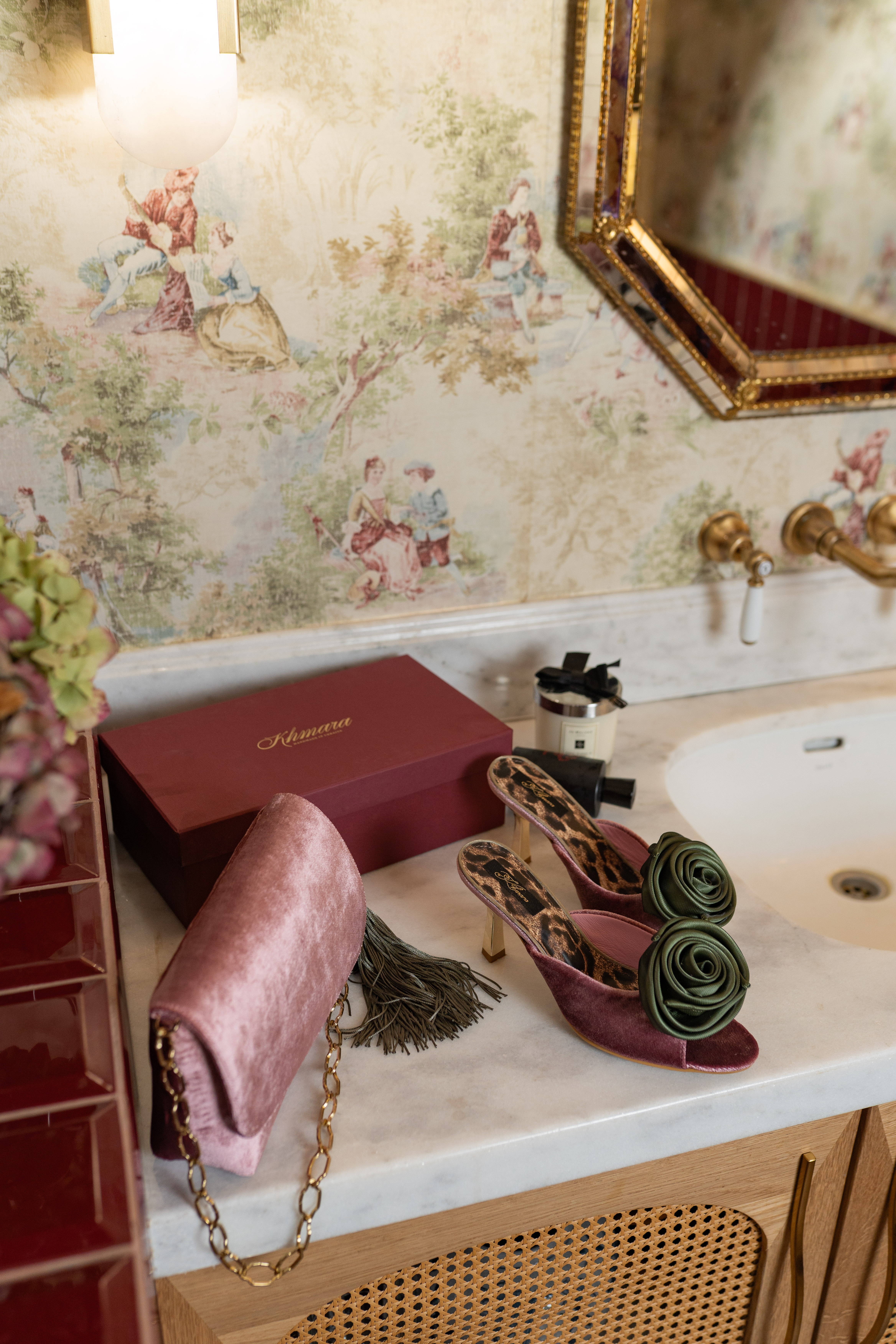 ALLURE CLUTCH PINK Розміри (довжина/ширина/висота): 24х6х14 см. Клатч виготовлений з дизайнерського оксамиту преміум-класу у пудровому кольорі який гармонійно на світлі переливається у сіро-пудровий. Цей матеріал не лише має м'яку, приємну на дотик текстуру, але й відрізняється високою зносостійкістю. Всередині клатч обшитий дизайнерською підкладкою з натурального шовку. Містить велику кишеню та зручну меншу кишеньку на блискавці. До клатча прикріплена розкішна довга китиця ручної роботив оливковому відтінку з шовкових ниток та японського бісеру, яка слугує ключовою декоративною деталлю. Китиця кріпиться на міцну золотисту застібку, що дозволяє її легко відчепити за бажанням. Компактна, але вмістка прямокутна форма клатча з елегантним заокругленим клапаном, який надійно фіксується. Зручна та надійна магнітна застібка, розташована під клапаном, забезпечує швидкий доступ до вмісту, зберігаючи при цьому чистий зовнішній вигляд клатча. Клатч має красивий золотий ланцюжок який одночасно і дуже жіночний і практичний для використання. Також ланцюжок має спеціальні покриття тому при використанні не змінює колір.