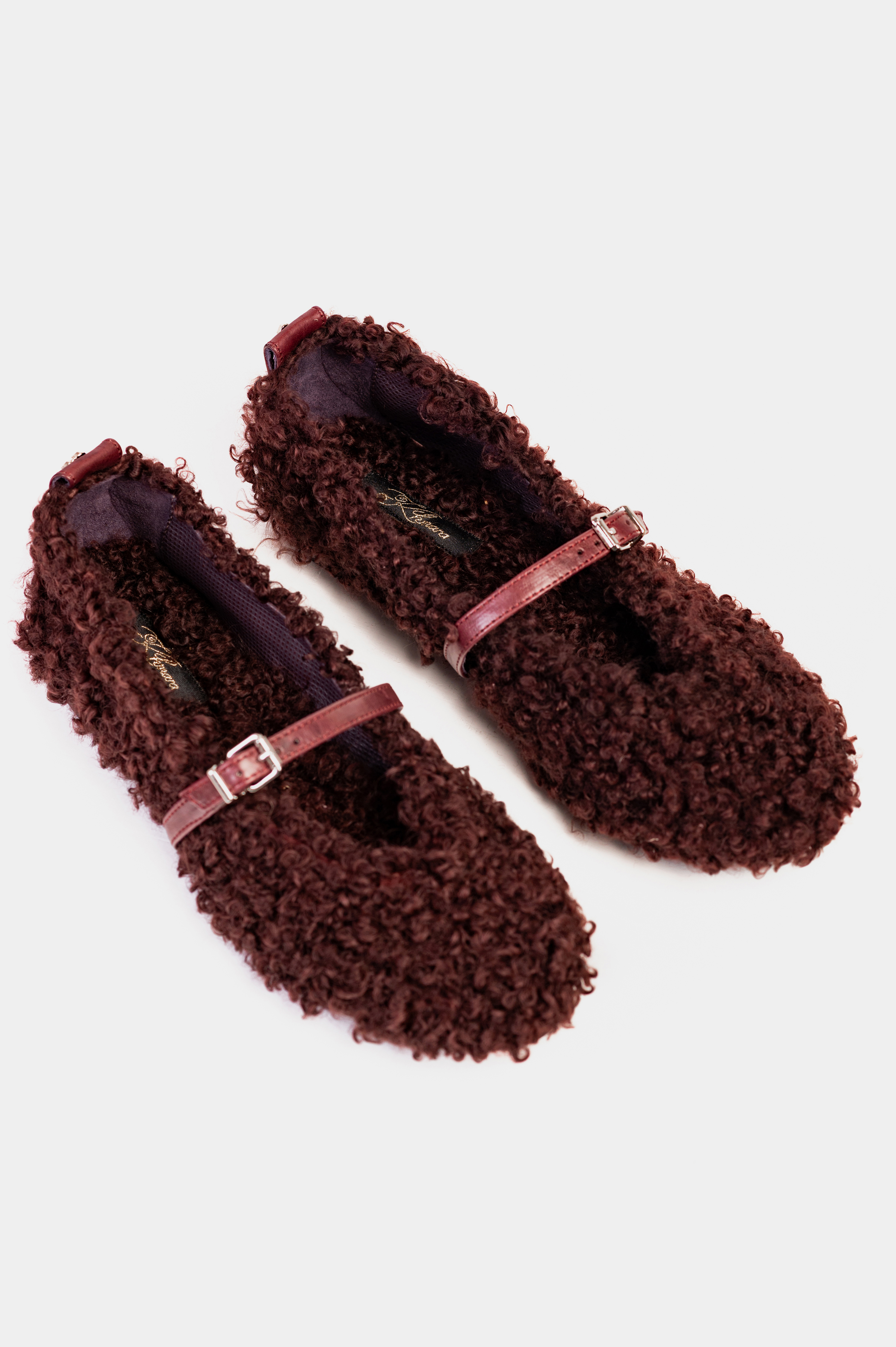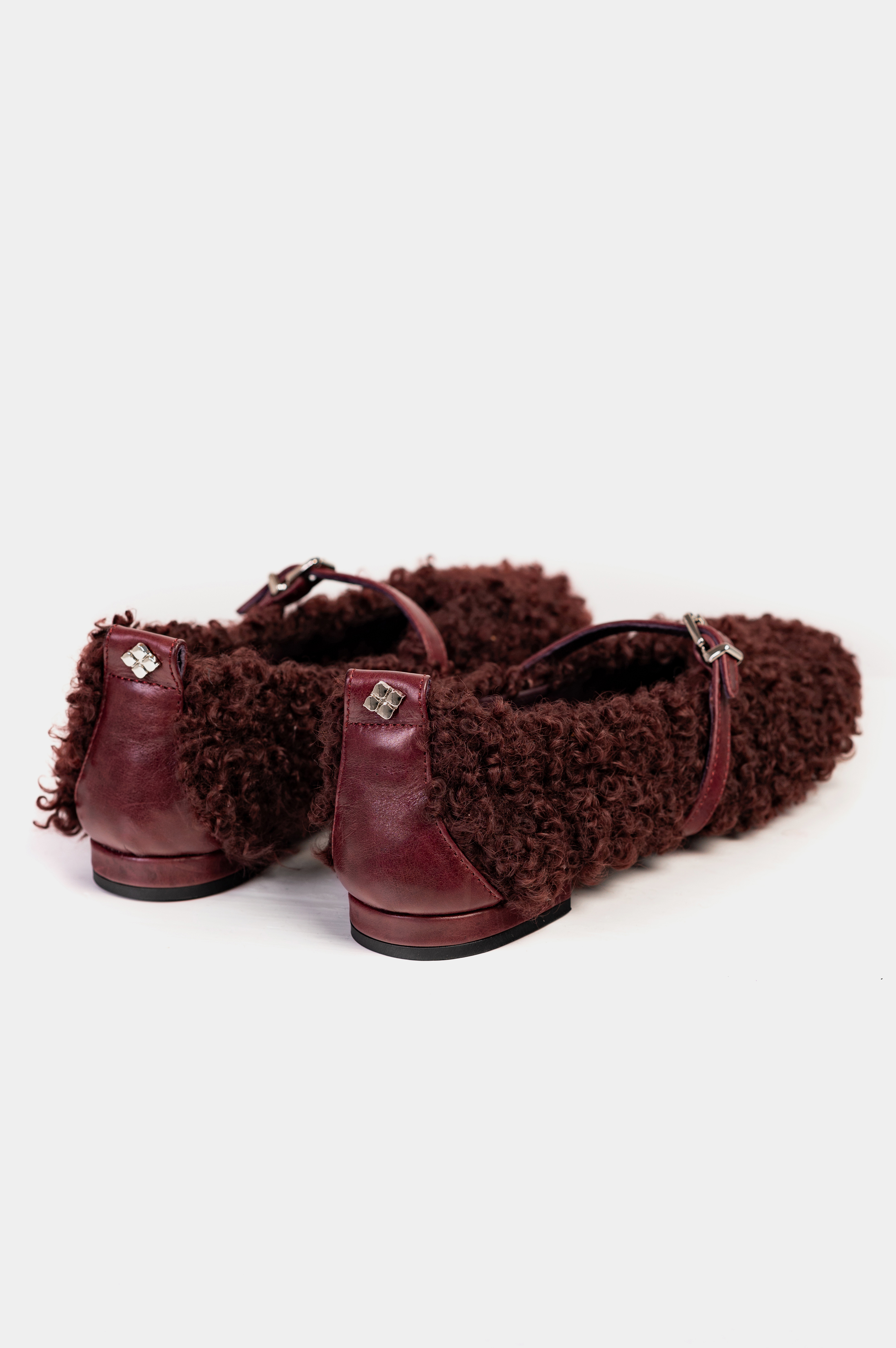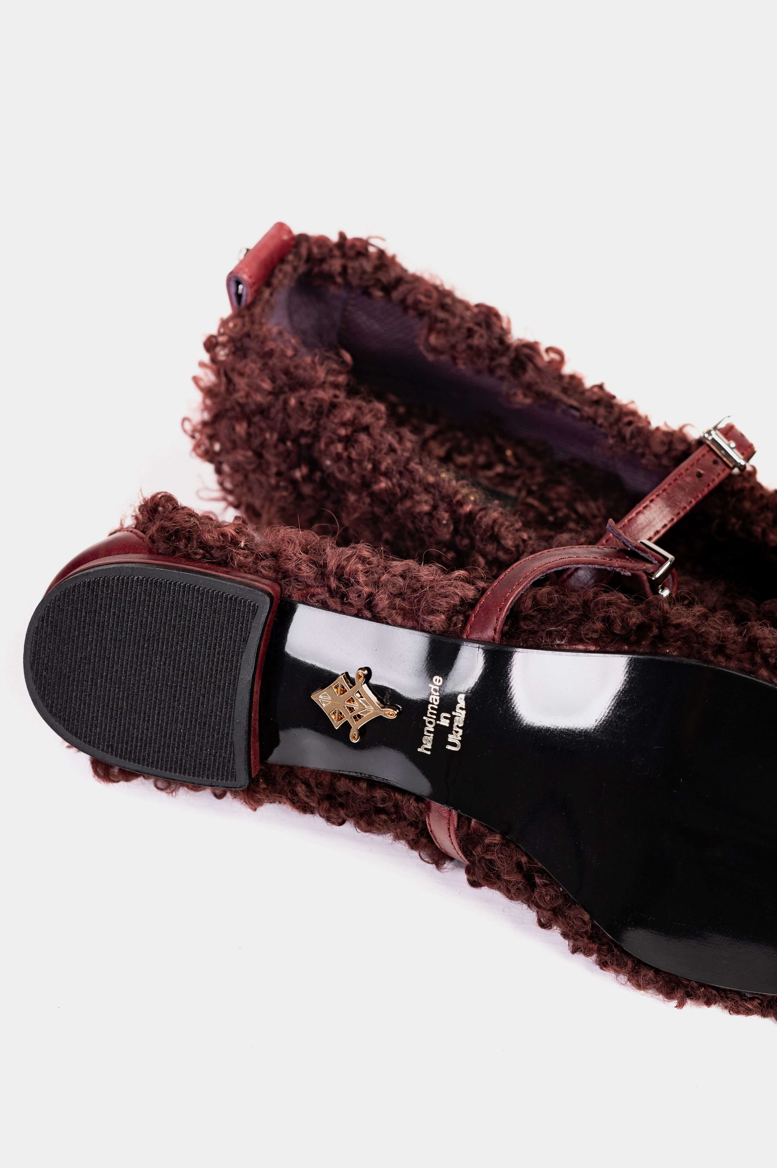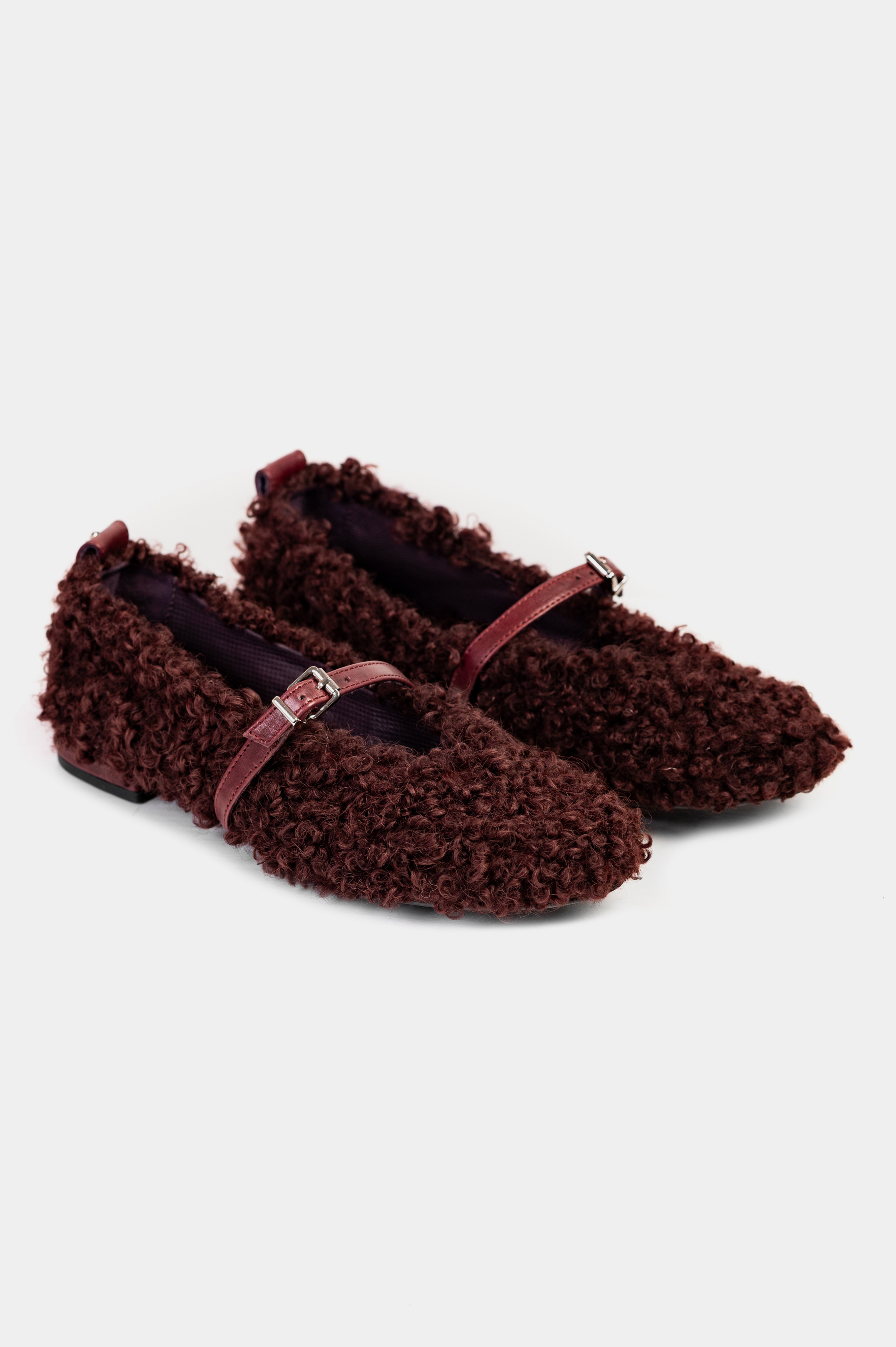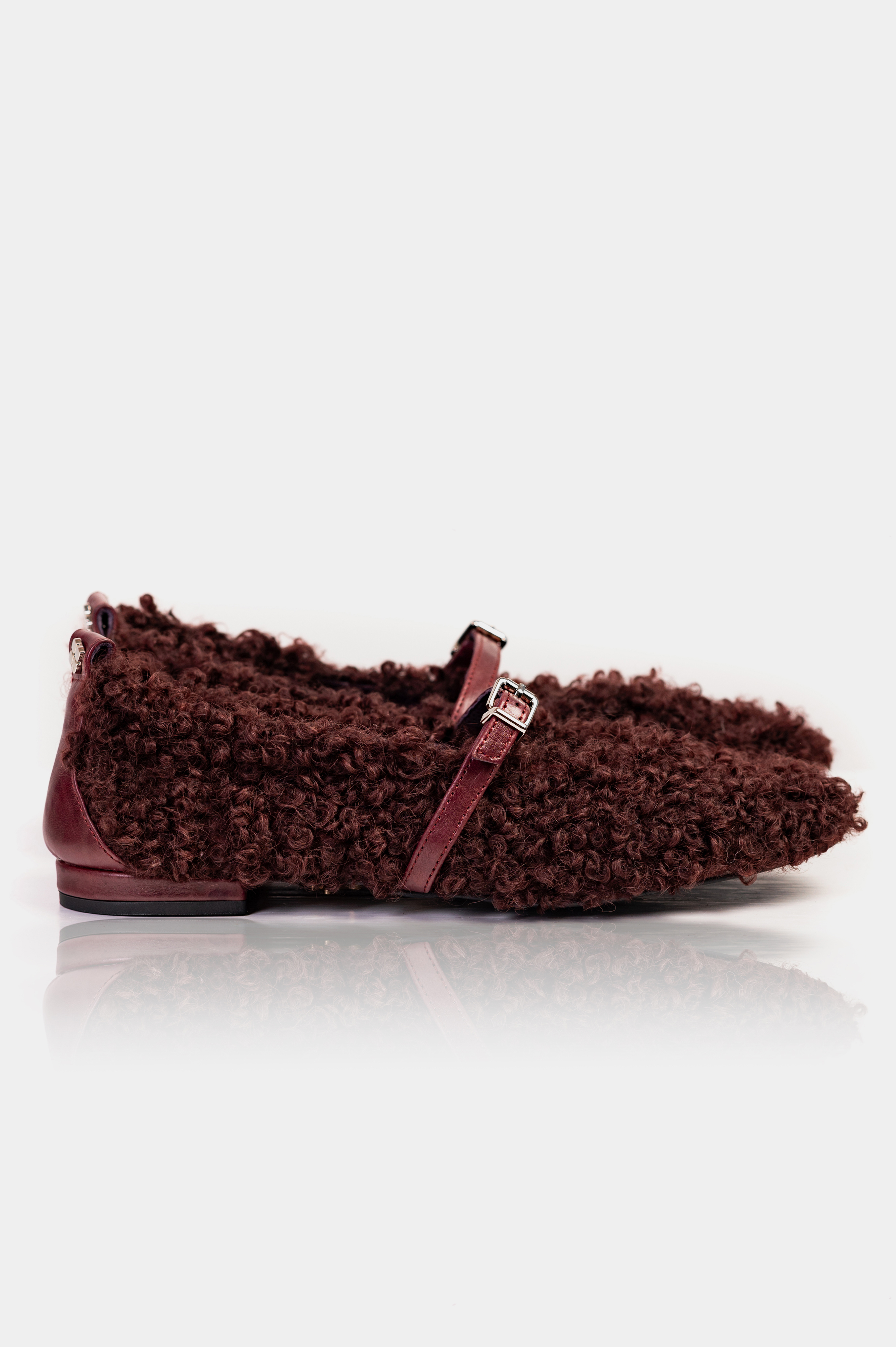 БАЛЕТКИ ХУТРЯНІ БОРДО Ця модель переосмислює класичний силует балеток, огортаючи його в м'яке, текстурне хутро глибокого відтінку бордо. Вони додають образу теплоти та неформального шику, створюючи ефект "плюшевого" взуття. Об'ємне, кучеряве натуральне хутро дарує неперевершену тактильність та затишок. Класичний тонкий ремінець на підйомі, виконаний з натуральної шкіри в тон, додає структурності та надійно фіксує взуття на нозі. Елегантна металева пряжка завершує образ. М'яка внутрішня підкладка з натуральної шкіри та устілка з натурального хутра забезпечують зручність протягом усього дня. Каблук обтягнутий натуральною шкірою. Ці балетки стануть влучним та цікавим акцентом у гардеробі та підкреслять вашу любов до незвичайних деталей.