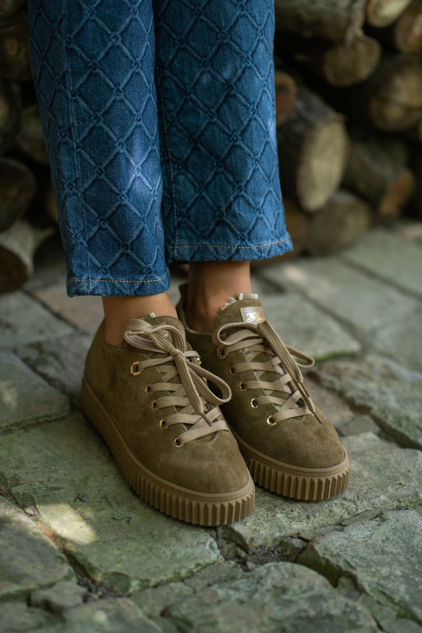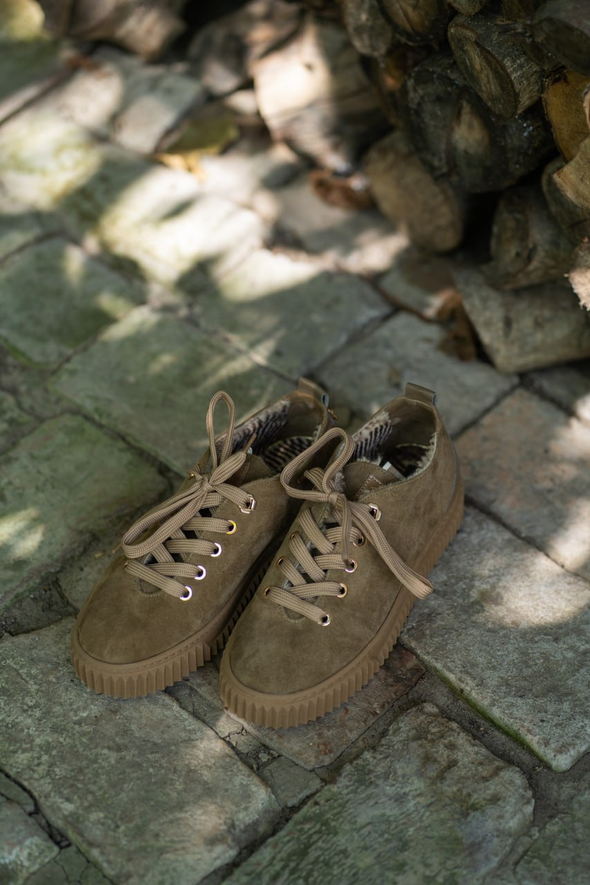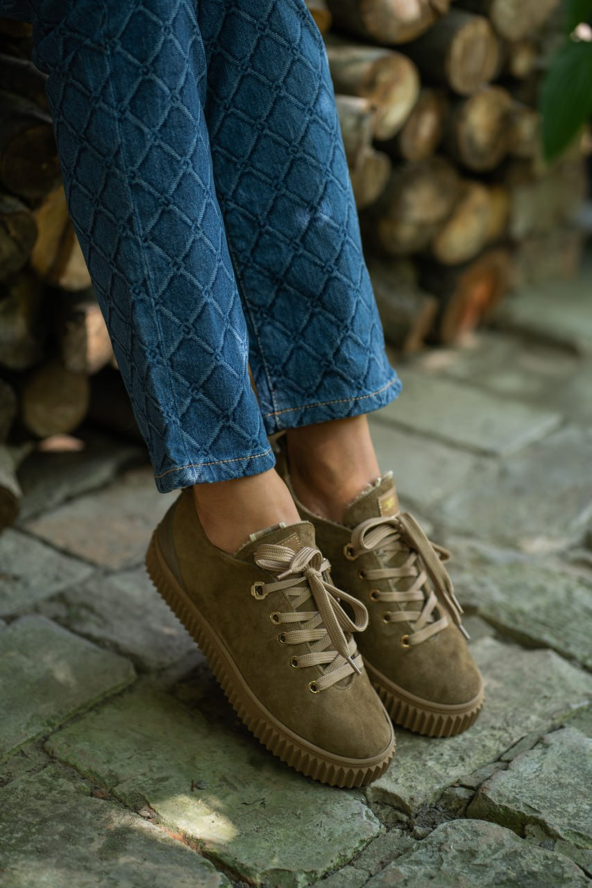 Кеди замшеві коричневі з хутром Ідеальне поєднання краси та затишку. Модель створена для активних днів у холодну пору року, забезпечуючи неперевершений комфорт, тепло і, водночас, зберігаючи елегантний вигляд. Верх виготовлений з натуральної, м'якої взуттєвої замші світлого коричневого відтінку. Замша надає взуттю благородної матової фактури та преміального вигляду. Всередині кеди повністю огорнуті м'яким натуральним хутром. Це створює надійний тепловий бар'єр, дозволяючи вам почуватися комфортно навіть у морозну погоду. Стійка, об'ємна підошва в колір верху, забезпечує чудове зчеплення та додаткову ізоляцію від холодної землі. Класичний, універсальний силует кедів, доповнений затишною зимовою функціональністю. Цупкі шнурки, що гармонійно поєднуються з кольором замші, дозволяють ідеально зафіксувати взуття на нозі. Вони ідеально доповнюють повсякденний гардероб: чудово виглядають з джинсами, вовняними штанами, парками чи пуховиками, додаючи образу тепла та стилю.